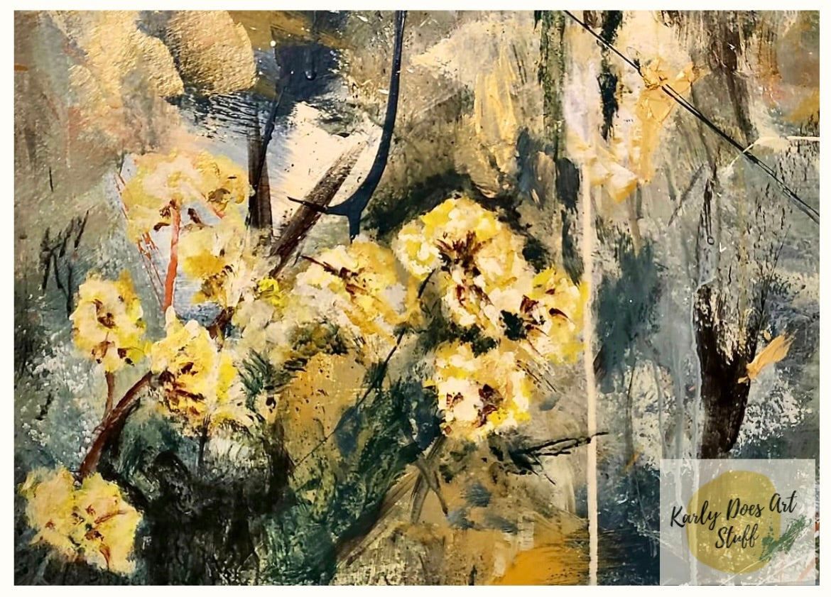 Este estampado floral es un extracto de un mural más grande ubicado en Costco Wholesale en Portland, Oregón. Esta sección del mural se inspiró en "Rapsodia en Azul" de George Gershwin.