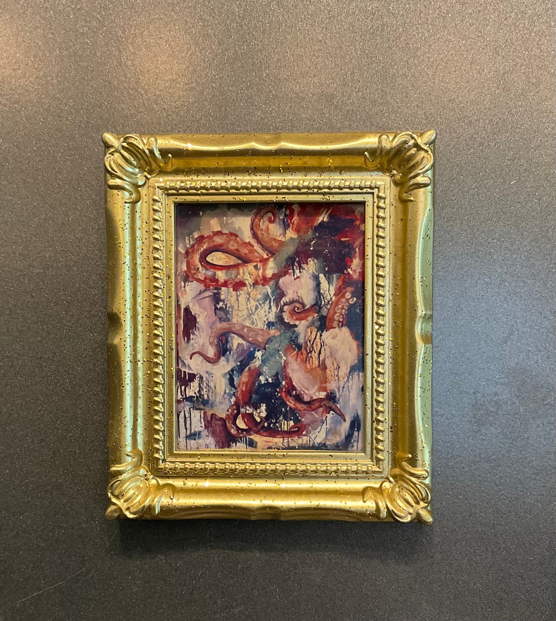 Muéstralo en tu refrigerador o estantería con el marco adornado negro o dorado.