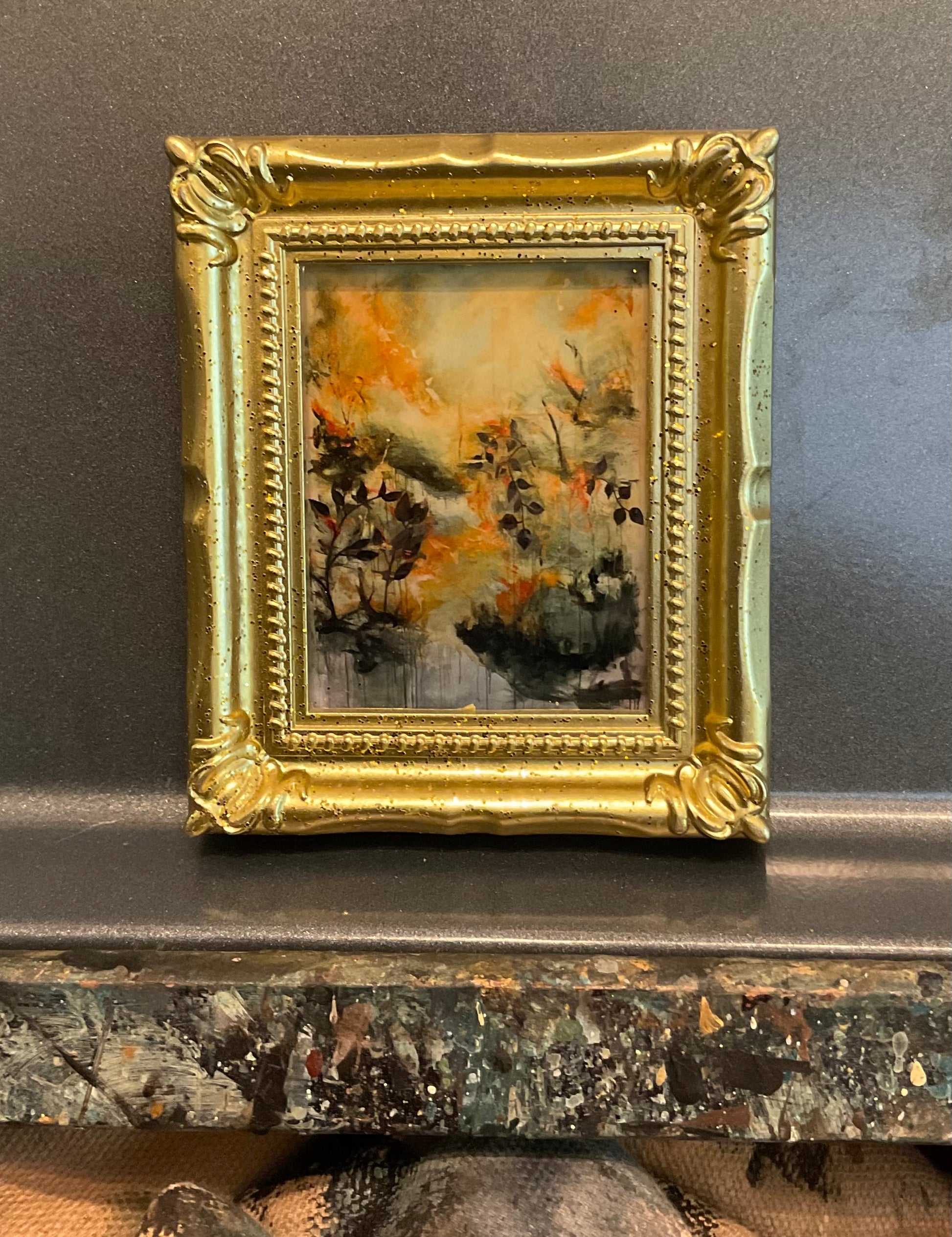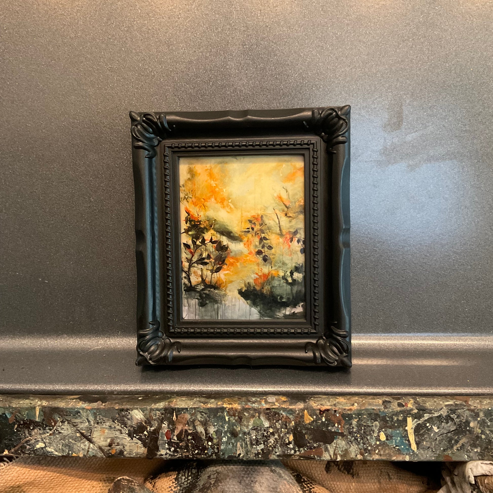 "Above Tintern Abbey" is of a custom residential mural. The original mural was inspired by the work of Romantic era poet William Wordsworth. It features an abstracted landscape with foliage and a sweeping interplay of green, orange, and gold colors!