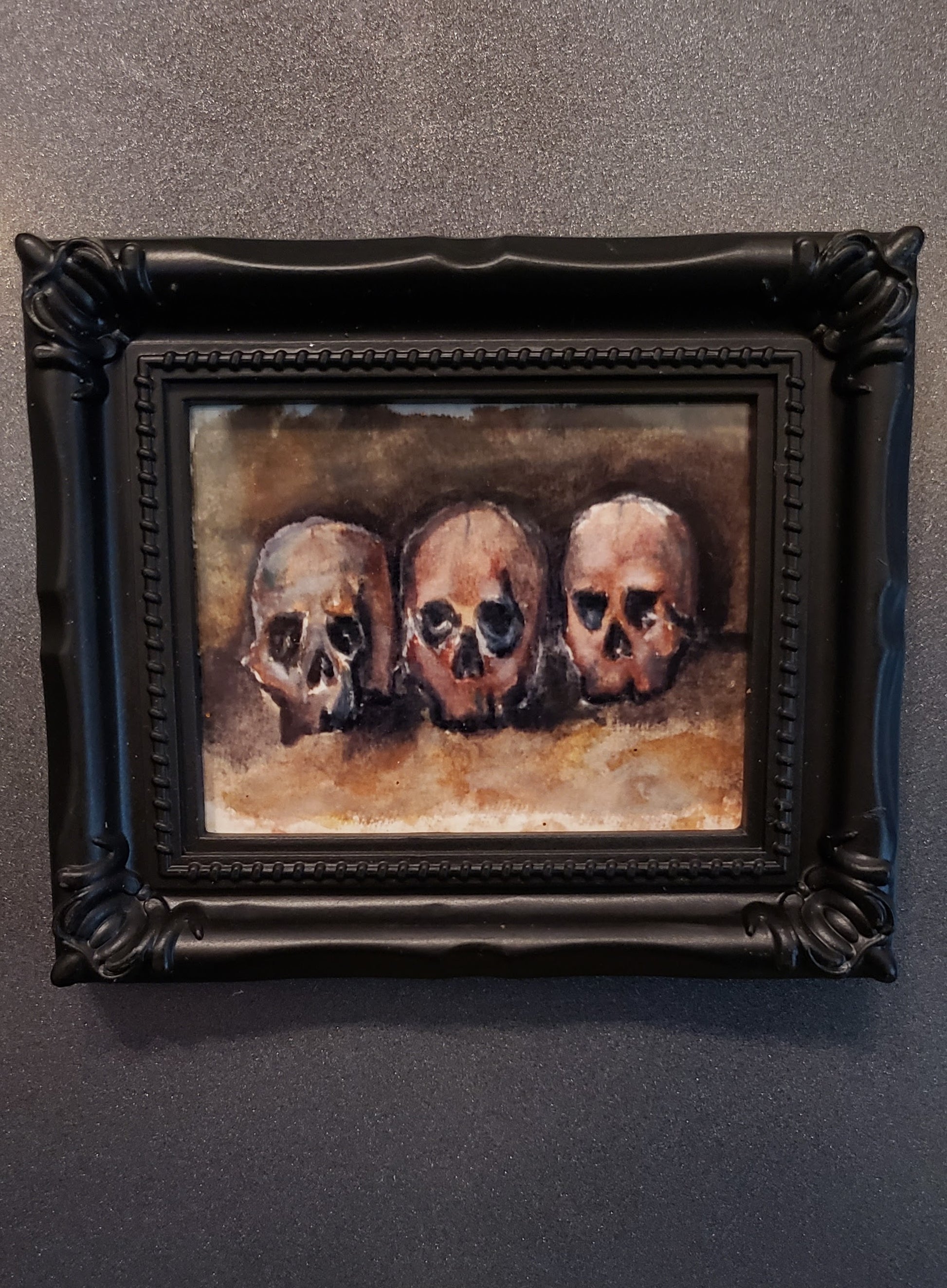 Perfect for adding a spooky touch to any room, this magnet is available in a black or gold ornate frame frame measuring at 4" x 3". Don't miss out on this unique and eerie addition to your décor!