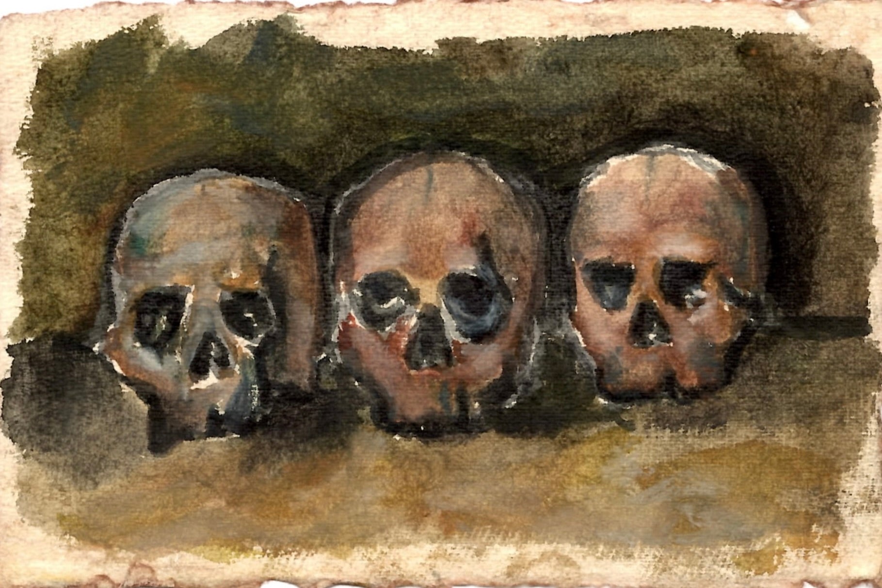 Experience the haunting beauty of "Cezanne's Skulls" - inspired by Paul Cezanne's work, this print of an original watercolor painting.
