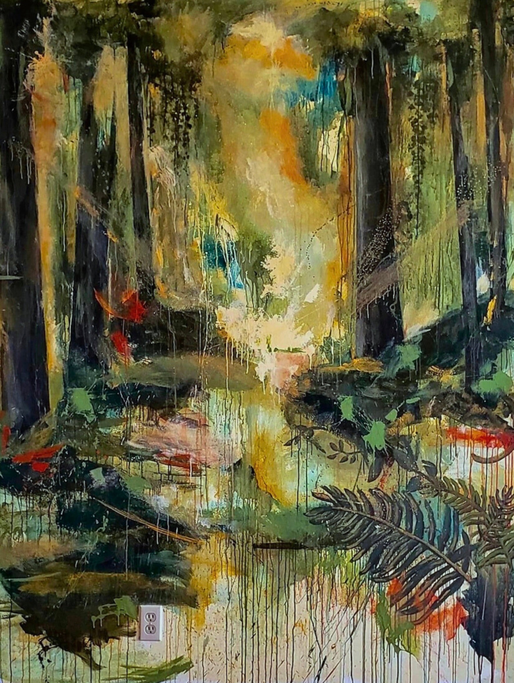 The original mural was inspired by the landscape of the Pacific Northwest and it features an abstracted forest with foliage and a sweeping interplay of colors!