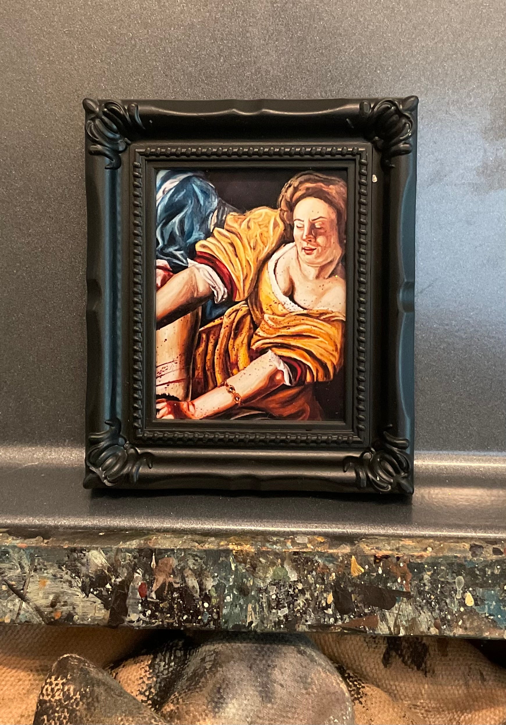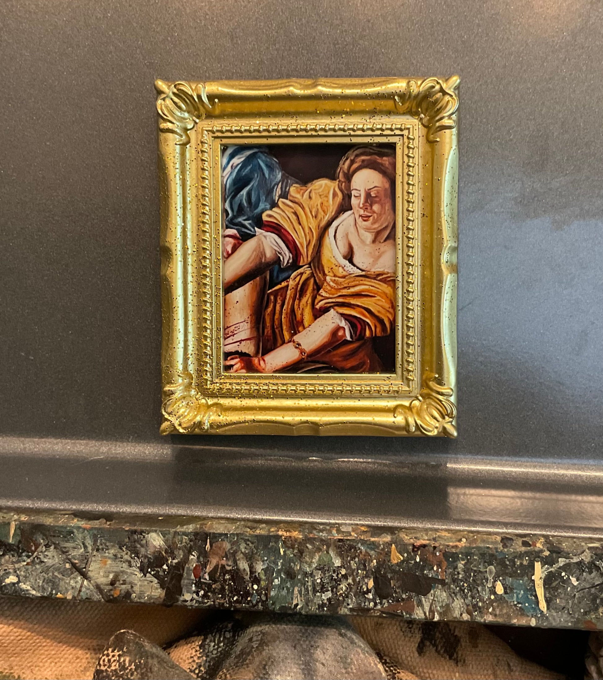 Inspired by Artemisia Gentileschi's "Judith Slaying Holofernes", this magnet features a print of a revamped version with added blood splatter and Judith's enigmatic smile.