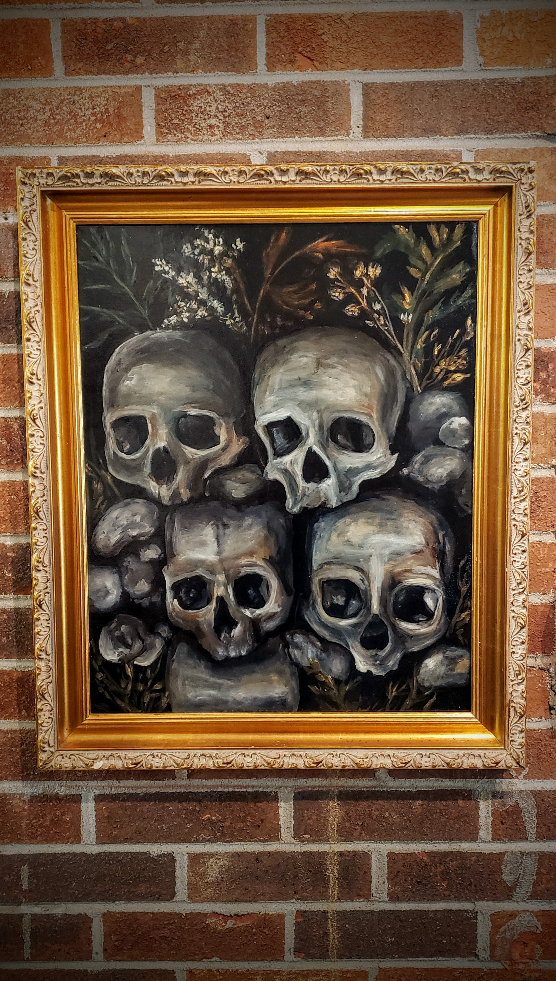 The artwork, presented in a 20" x 24" gold antiquated frame